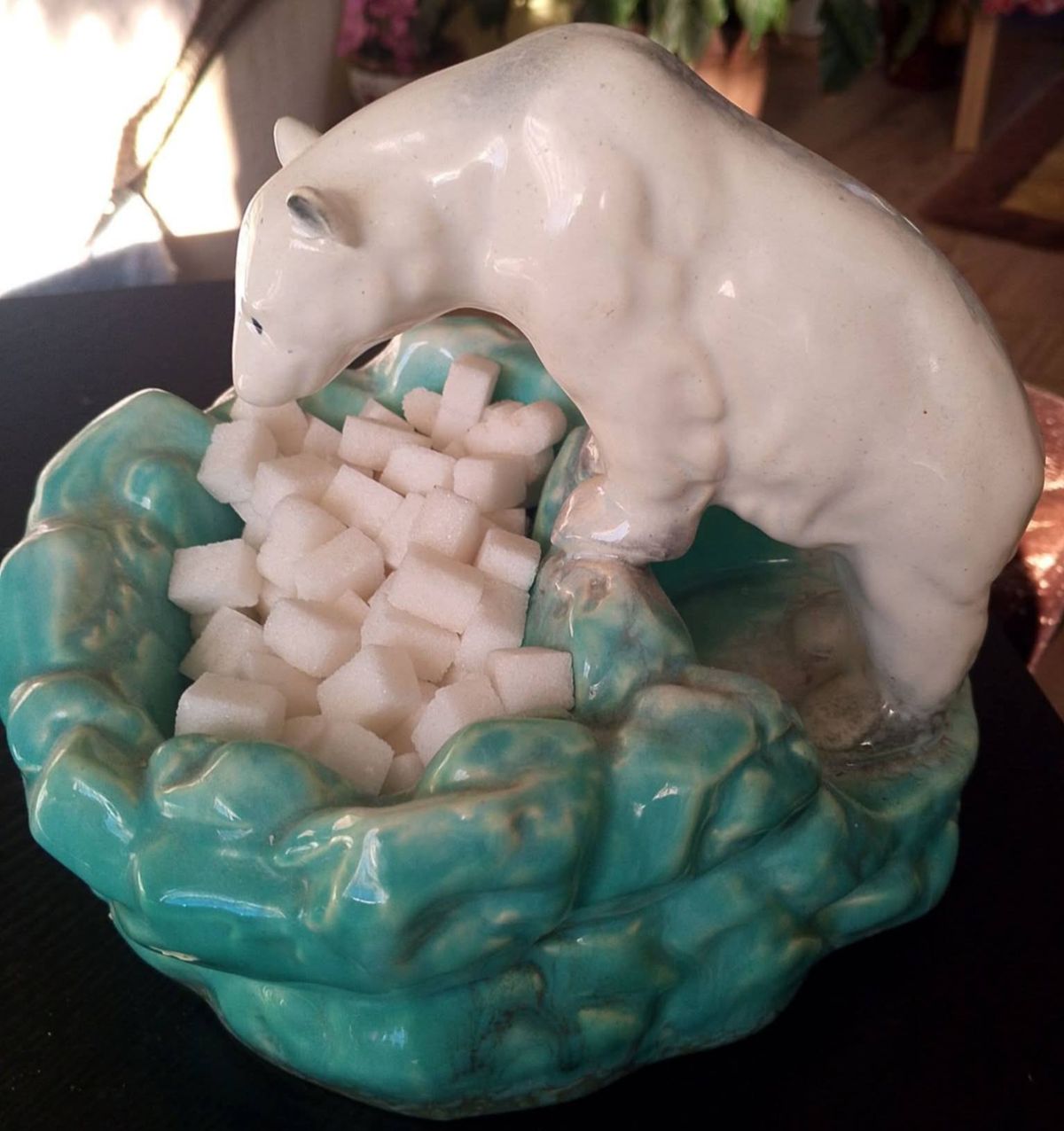 Otázka natolik zásadní, jako zda, je lepší kanec se šípkovou omáčkou, nebo se zelím z filmu Slavnosti sněženek. Někteří se trvale usídlili v táboře popelník a jiní jsou neochvějný tým cukřenka, do něhož se řadím i já. Vždyť si to vezměte: Šlo o ledního medvěda, kostky cukru mají evokovat ledové kry. A co si budeme, vypadá to krásně! Mnohem estetičtěji než vajgly od cigaret a popel. I ty prohlubně se mi zdají, že cigarety řádně neudrží a stačí sebemenší drknutí nebo menší průvan, fouknutí větru a cigareta spadne. Kdežto kostky cukru zůstanou na svém místě. Někdo ovšem namítá, že nemá poklop, tudíž cukřenka to být nemůže, což je logický argument, avšak nezakryté cukřenky také existují. Přece to nemusí být cukřenka „skladovací“ čili „úložní“, ale „příležitostná“ tj. „krátkodobá“ pro návštěvy. Těch pár kostek, co si návštěva nabere a dá do kávy nebo čaje a jejich ratolesti si poberou zbytek, a v tu ránu je prázdná. A když přece jen zbyde, tak se z cukřenky krátkodobé přesune zpět do úložní. V době svého vzniku se předmět nacházel i v kavárnách, kde tedy byly možné obě varianty.
