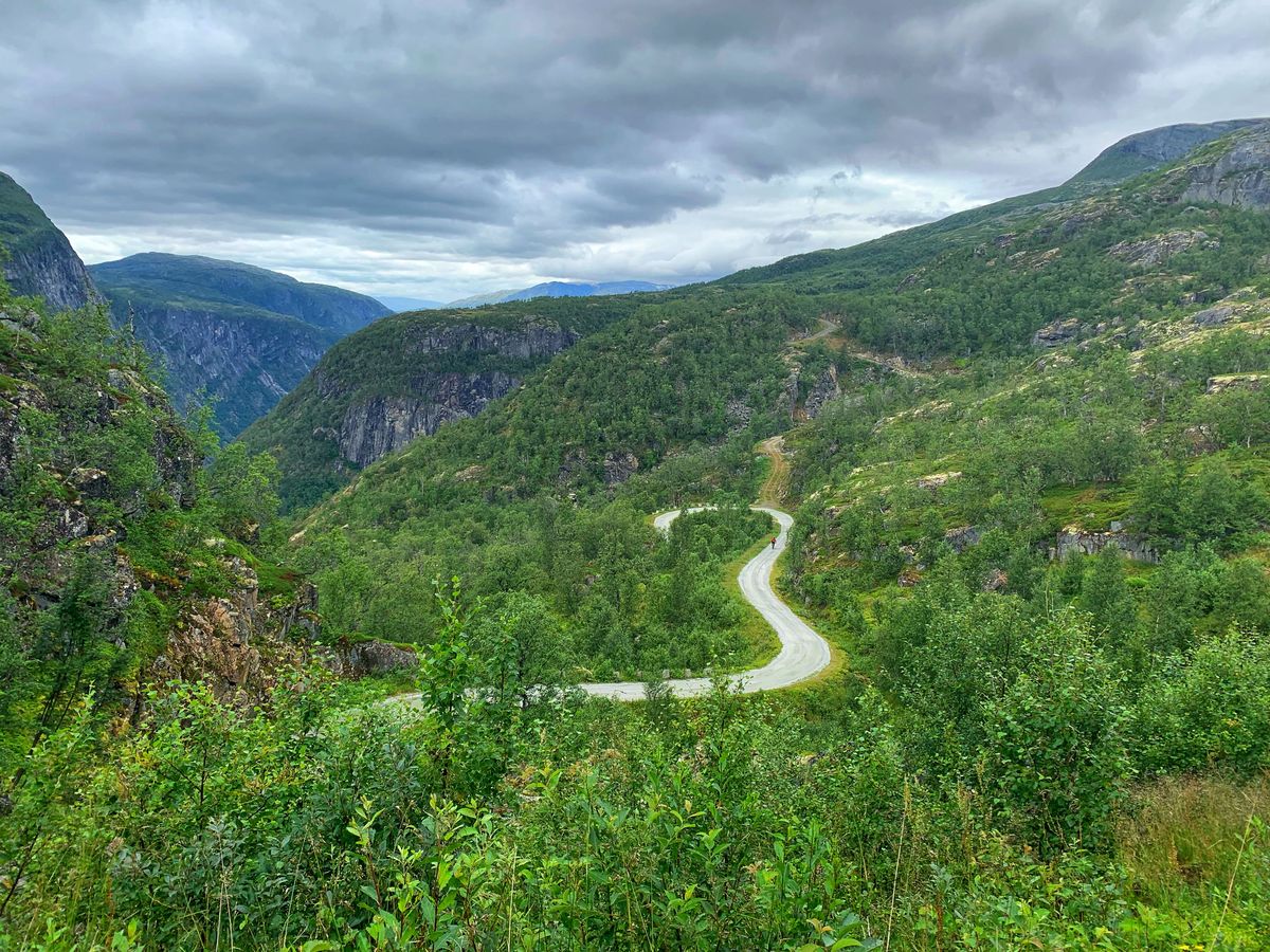 Den po procházce jsme se rozhodli vyrazit na kole do Hardangerviddy. Pěšky jsme se předchozí den moc daleko nedostali, ale na kole to přece bude jednodušší. Jenže… i se serpentýnami a stoupáním od hladiny moře až na náhorní plošinu. Podle mapy nám přišlo, že to bude jen pár kilometrů a nahoře si dáme krátký pěší trek. Vzali jsme si tedy jen běžecké boty.