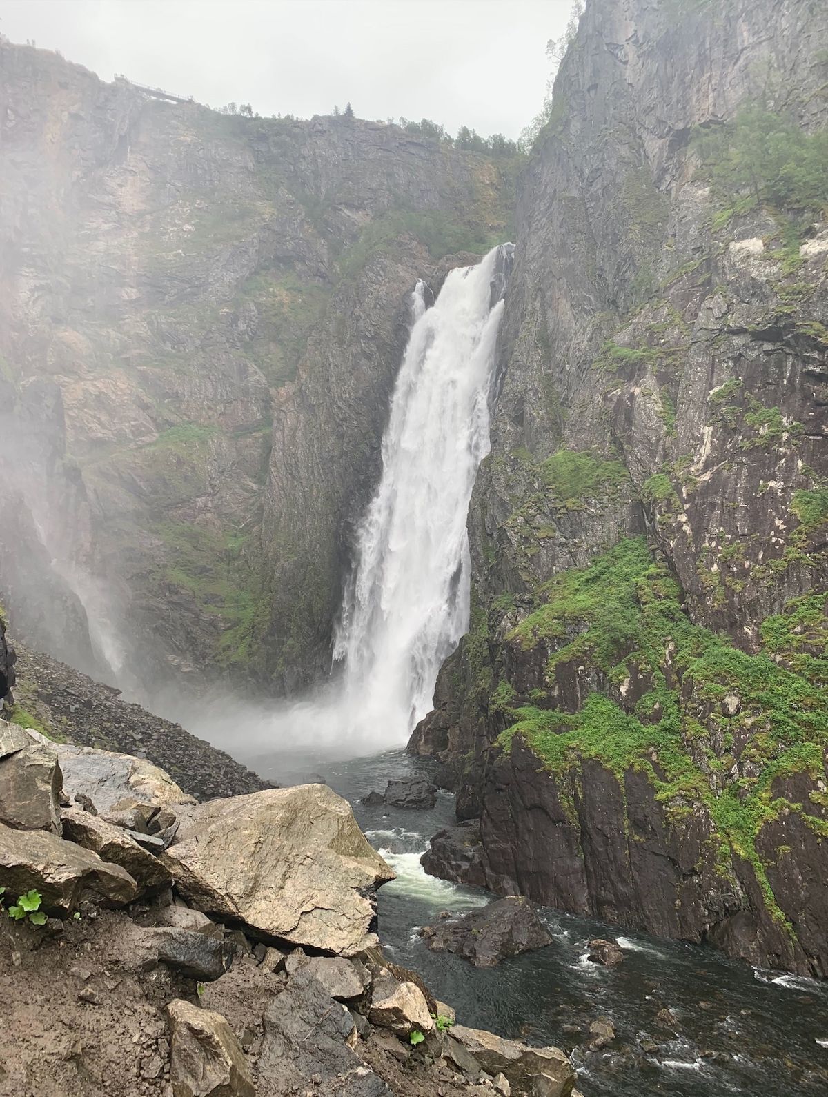 Další zastávkou byl vodopád Vøringsfossen. Se svými 183 metry patří k nejznámějším vodopádům v Norsku. My jsme si ho prošli delší trasou, abychom nebyli jako lemry, které si zajedou na parkoviště nad vodopádem, seběhnou dolů pro fotku a zase zmizí. Jediná škoda byla, že jsme při výletu ztratili babiččinu oblíbenou vestu. Kdyby ji někdo našel, je naše 🙂