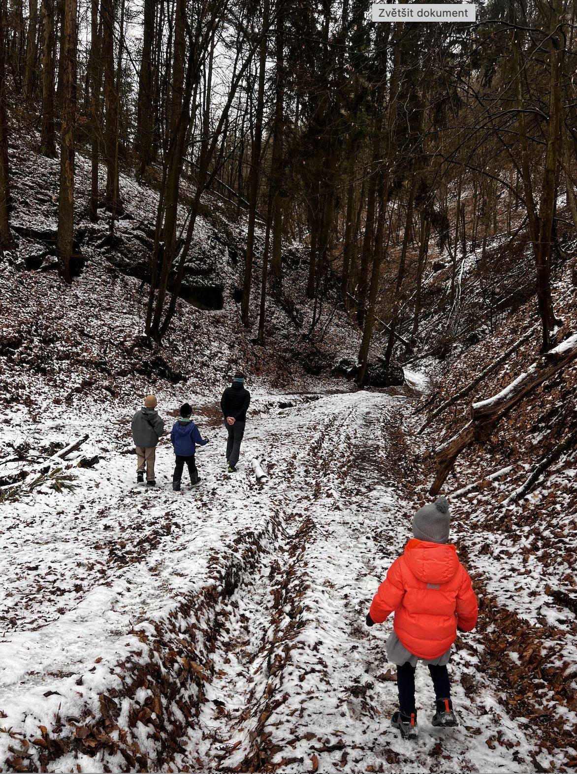 Celý víkend měl propršet. Jen sobotní odpoledne vypadalo nadějně a po dlouhých mrazech se mělo konečně oteplit. Původní návrhy na lezeckou stěnu nebo kino utnul otec větou: „Půjde se na výlet.“