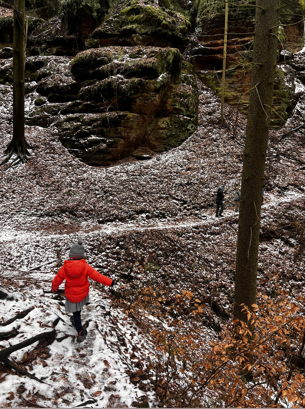 Cesta za hradem směrem ke skalnímu hradu Nedamy byla nejhezčí část celého výletu. Ticho, skály, minimum lidí. Děti dál medvědily a beruškovaly a kilometry ubíhaly překvapivě rychle.