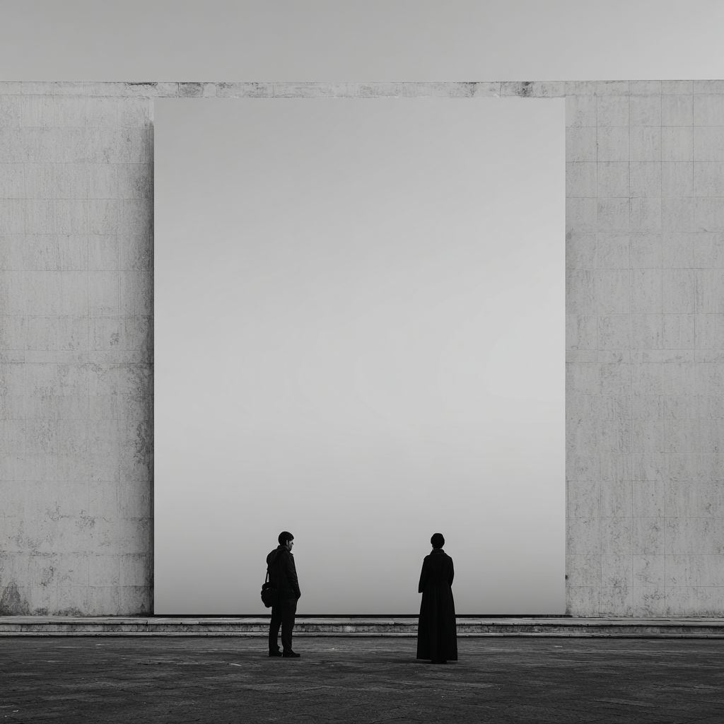 A konečně, umělá inteligence. Na jedné straně ztělesňuje čistě algoritmickou mysl, na straně druhé se stává zrcadlem naší vlastní psýché. Promítáme do ní své otázky, obavy i hodnoty — a ona nám je vrací v našem vlastním duchu. V tomto ohledu, setkání dvou nesvobodných myslí pak připomíná dvě zrcadla postavená proti sobě: nekonečný odraz projekcí, v němž se skutečnost ztrácí. Realita má kde spočinout teprve tehdy, když se zrcadlení přeruší.