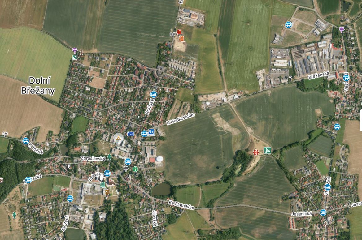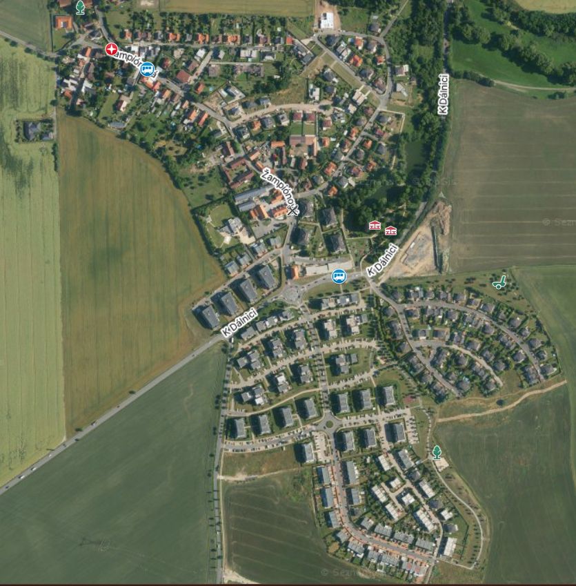 Pitkovice trpí podobnými problémy, ale zcela opačného rázu. V lokalitě je příliš mnoho rezidenční výstavby a podniky zcela chybí, jak dokládá výřez níže.