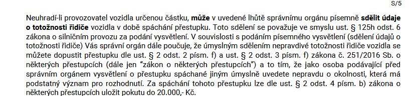 Za nepravdivě uvedené údaje hrozí pokuta 20 tisíc korun. Pokud přestupek rozporujete a úřad vám nedá za pravdu, výše pokuty může za přestupek s označním B28 dosáhnout podle zákona až 10 tisíc korun.