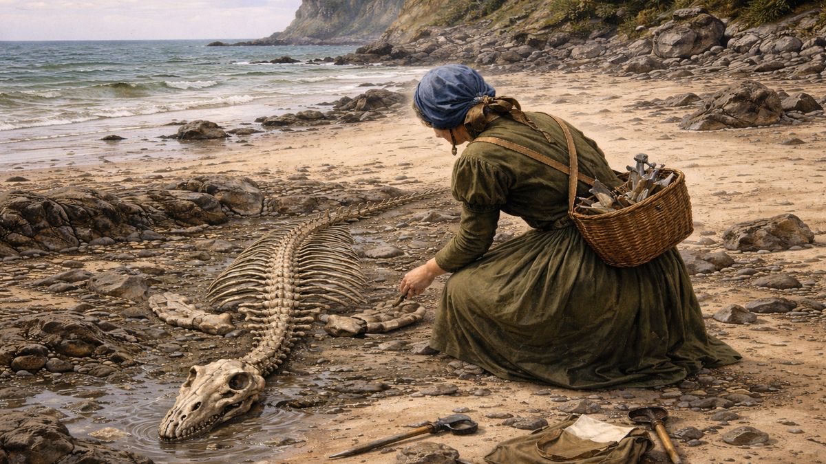 Mary Anning se narodila v roce 1799 v anglickém Lyme Regis - místě, kde se moře zakusuje do útesů a odhaluje svět dávno před lidmi.