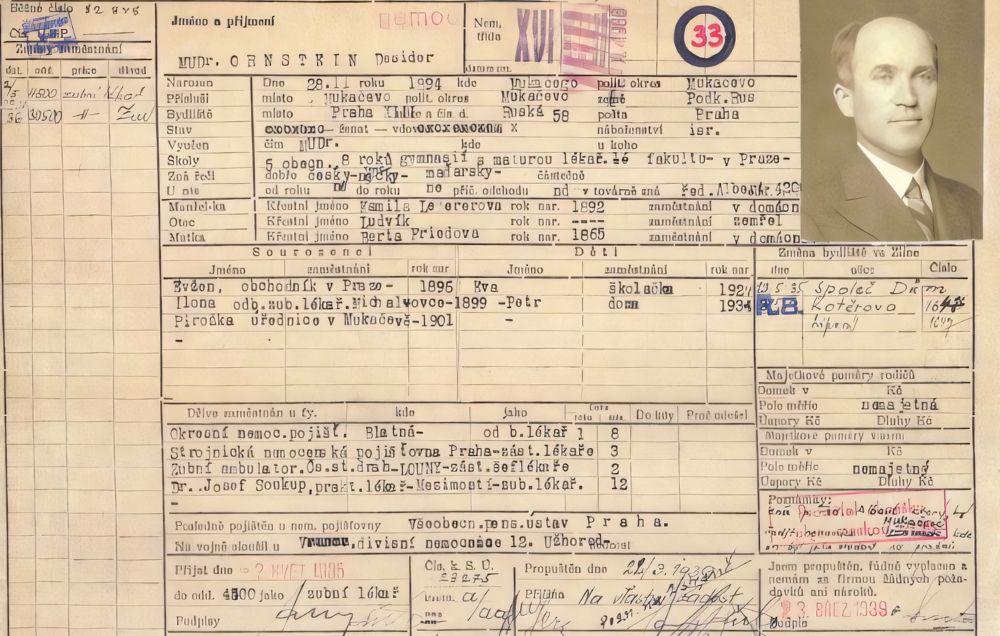 „Jmenovaný přistěhoval se do Zlína 2.5.1935 z Prahy. Jest zaměstnán jako odborný zubní lékař v zubním odděl. Baťovy nemocnice. Předtím působil v Praze. Ve Zlíně nemovitosti nemá, avšak jest považován za zámožného,“ uvádí se v záznamu z 22. března 1939. Jsou na něm uvedeny i jména jeho manželky Kamily a obou dětí - dvanáctileté Evy a pětiletého Petra.