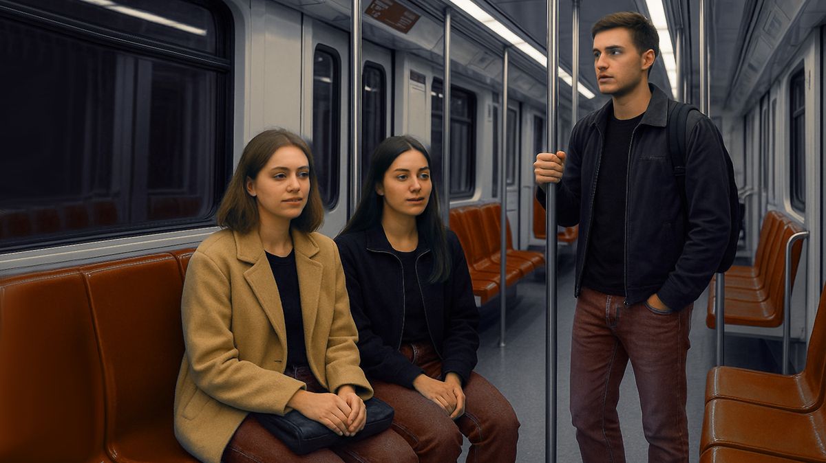 Většinou, jak to tak bývá, člověk obhlédne své okolí, aby věděl, „s kým to jede“. I já jsem tak učinil. Nic zvláštního. O stanici dál jsem se podíval, kdože to sedí pode mnou na sedadle. Tedy podíval - lovil jsem v náprsní kapse mobil a sluchátka, abych si zpříjemnil cestu. Seděla tam mladá hnědovláska s tmavýma očima, které se (nejspíš už pár vteřin) upíraly přímo na mě. Usmál jsem se. Z větší části tomu faktu, že kouká zrovna na mě. Ona ale kupodivu můj úsměv opětovala, a významně se podívala na kamarádku, která stála kousek vedle.