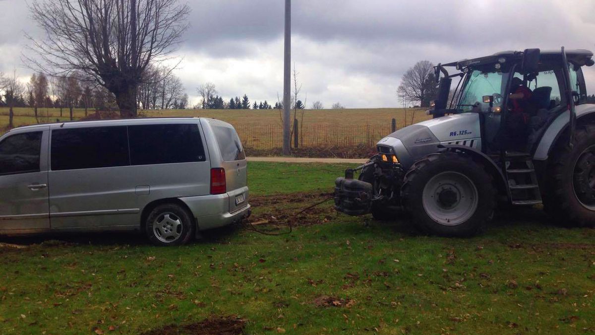 Ráno byla situace opravdu trochu jasnější. „Tak tohle je na traktor!“ prohlásil jsem. Kuře tedy investigativně zjistil, kdo v nejbližším okolí vlastní ten Pražáky opovrhovaný stroj, a kolem deváté ráno se v dáli na polní cestě skutečně objevil. Přiřítil se jako blesk, se stříbrnou metalízou na kapotě a typickým znakem zuřivého býka - ano, bylo to Lamborghini. Traktorista nelenil, připevnil ocelové lano ke kouli našeho Vitouše, a vytáhl ho z bahnité louky jako jahodu ze šlehačky. Na rozdíl od cukrárny nás ovšem tenhle dortík stál pětikilo. Zamávali jsme našemu zachránci, a když zmizel za zatáčkou, smutně jsme se podívali do peněženky, kde předtím byly peníze vybrané za koncert.