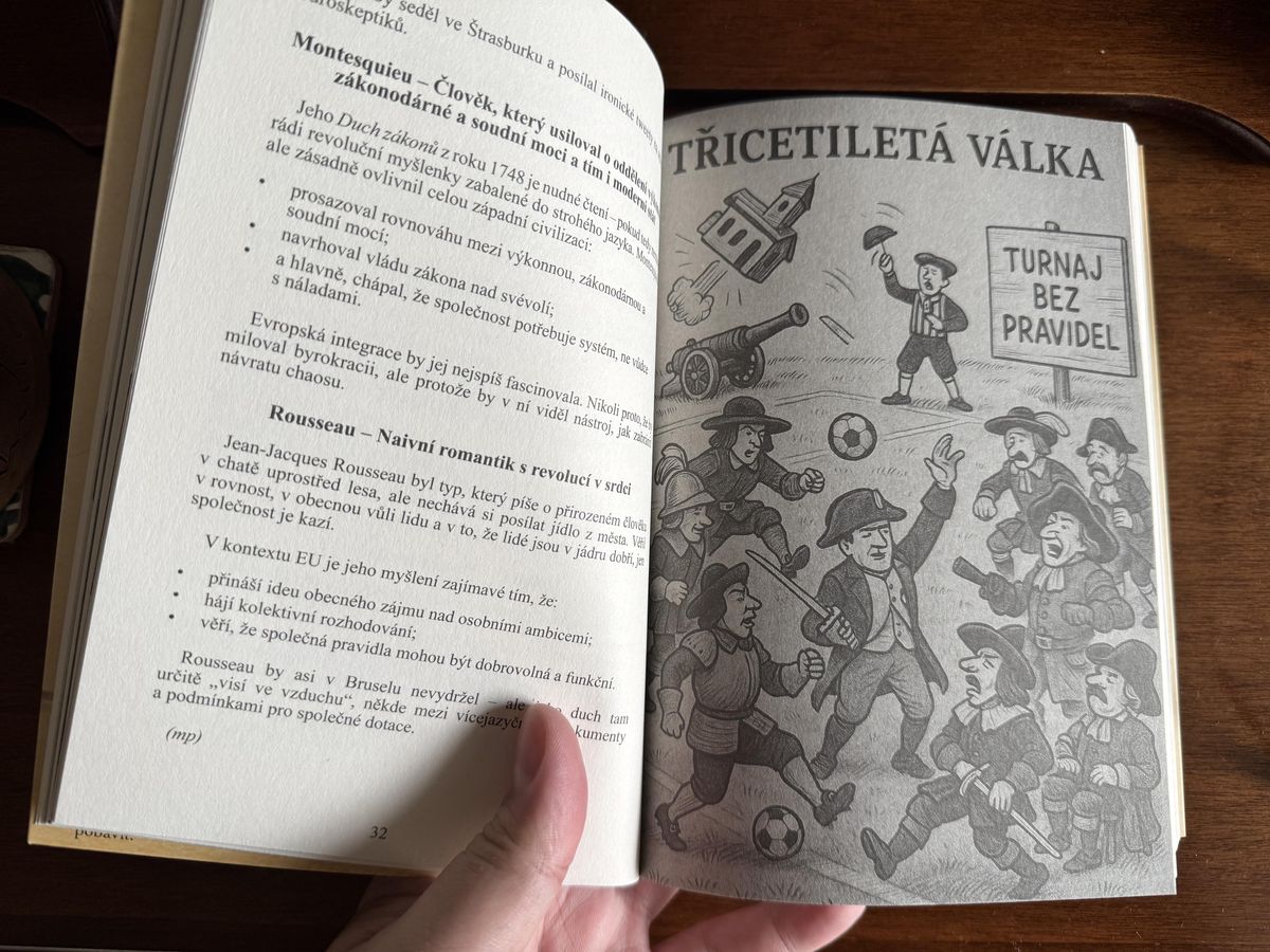 Jinými slovy, kniha je velmi dobrým přiblížením Evropské unie, jejího fungování, důležitých osob, vizí, stejně tak historií před EU, která k ní směřovala.