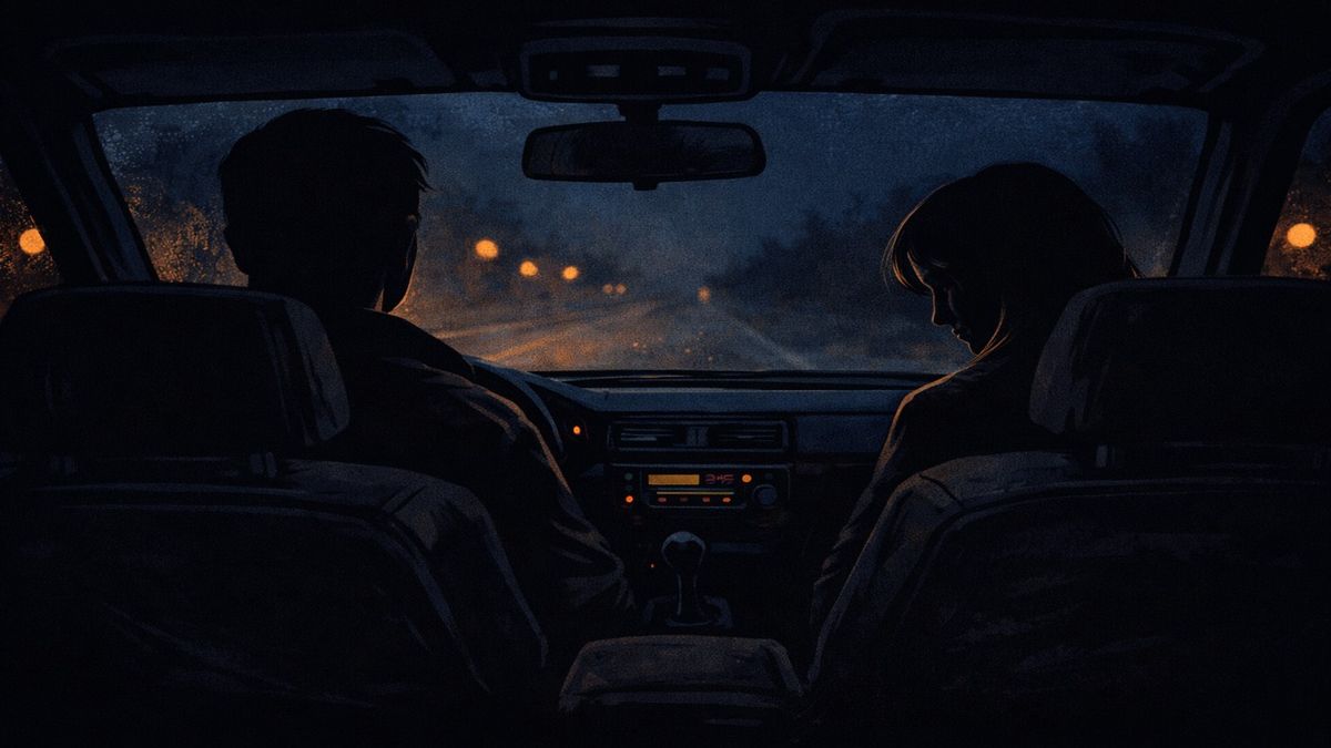 Je noc. Sklo se zamlžuje rychleji, než běží myšlenky. Rádio hraje potichu, skoro jen jako alibi, že se tu něco děje. Ulice jsou prázdné a auto stojí na místě, i když motor ještě běží. Někdo řekne větu, která už nejde vzít zpět. A pak je ticho.