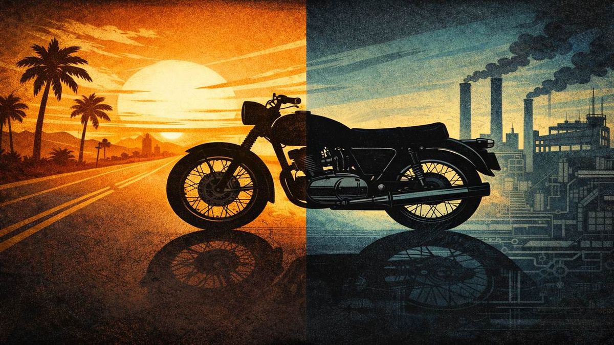 A teď ten ironický paradox: motorka, která se dnes v paměti prodává jako symbol volnosti, vznikala v prostředí, kde se volnost dávkovala opatrněji než benzín.