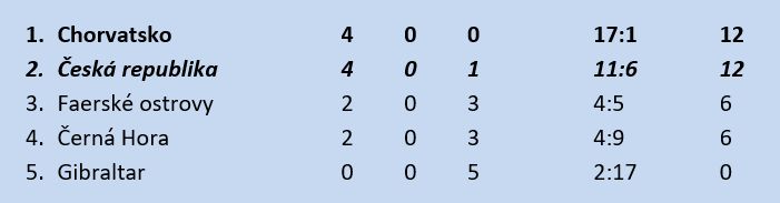 Tabulka skupiny L před říjnovými zápasy sice staví Čechy jen o skóre za Chorvaty, jenže rozdíl skóre je propastný. A čtvrteční soupeř má zápas k dobru.