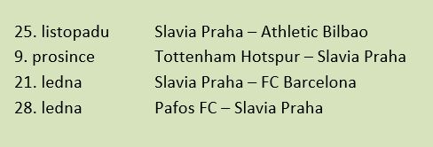 Zbývající program Slavie v hlavní fázi Ligy mistrů. Téměř jistě zde její postup soutěží skončí.
