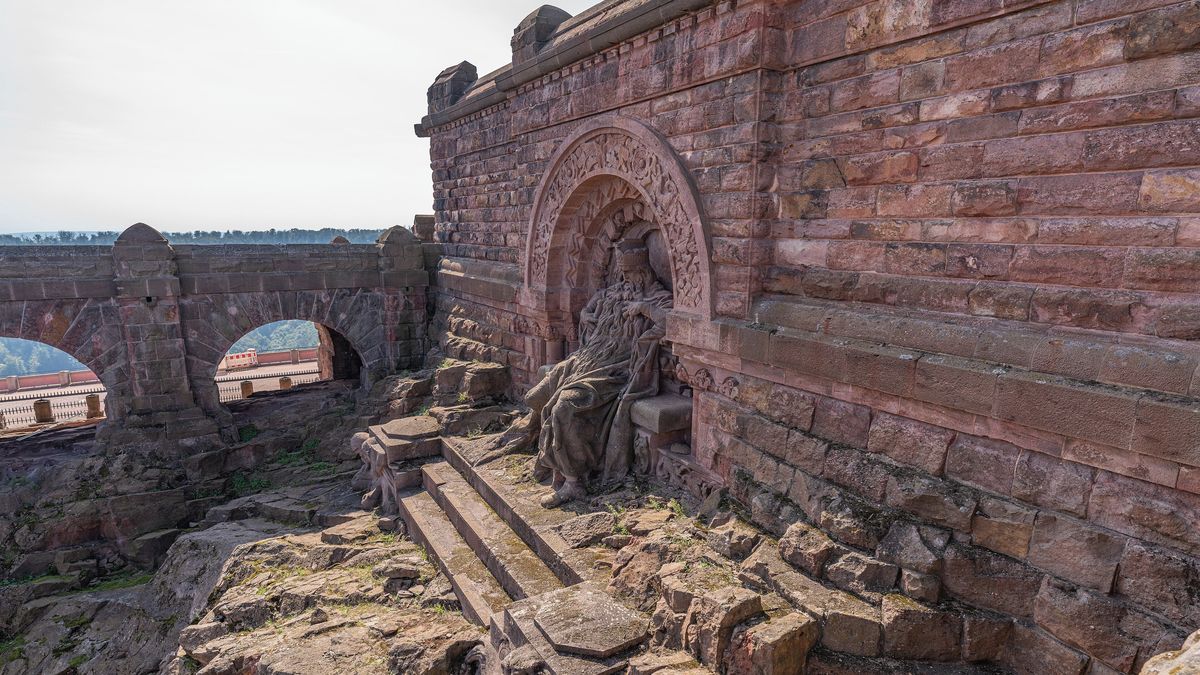 Pověst říká, že císař Barbarossa spí v hoře Kyffhäuser a jednou se vrátí. Pohled na celý památník.