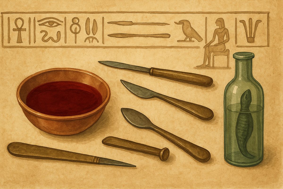 Sada nástrojů pro odběr krve ve starém Egyptě (ilustrační foto).