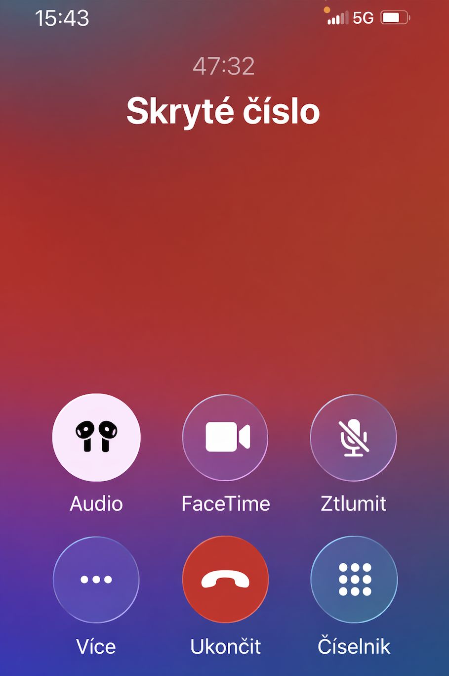 Snímek obrazovky z probíhajícího hovoru
