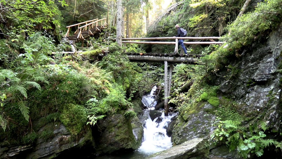 Po klidné cestě se blížíme k vodopádům Bílé Opavy, kde se začne měnit terén a tady začíná taková stezka odvahy. Upozornění je na každém rohu. Ale nebojte se, pohyb kaňonem vám ulehčí povalové chodníky a žebříky. Dejte si ale pozor na kamenné schody, které mohou mokré klouzat.