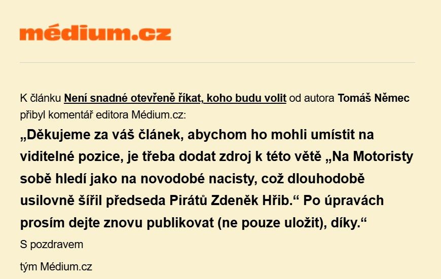 V tom, že by se člověk neměl stydět za to, koho volí, bych s panem Rakušanem skoro souhlasil. Člověk BY se neměl stydět za to, koho volí. Jenže to by zrovna pan Rakušan a premiér Fiala nesměli vytvořit psychózu, že když budou lidé volit někoho jiného než strany (bývalé) vládní pětikoalice, tak volí cestu do područí Ruska. Já možná vůbec volit nebudu, ale pokud budu volit, tak budu volit stranu Motoristé sobě.