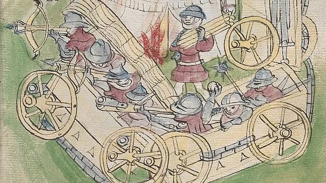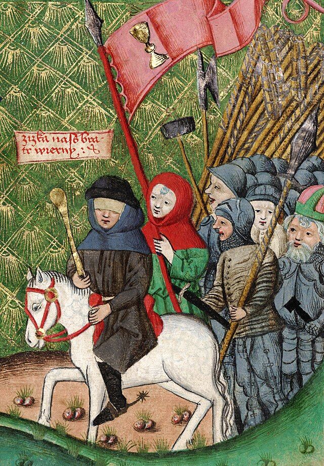 Jan Žizka vede polní vojsko, vyobrazení z Jenského kodexu z konce 15. století n. l.