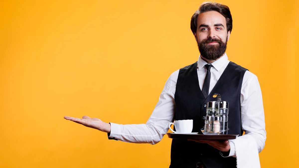 Číšník přichází ke stolu