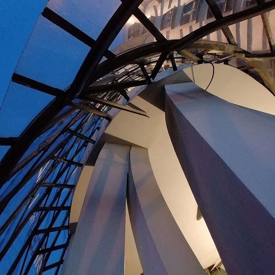 Byl to zásadní revoluční obrat konce 80. a začátku 90. let, kdy proběhla revize karteziánské ortogonální mříže, kterou Frank Gehry udržel dodnes. Je důležitá věc, že řád přírody je strukturován středově a osově, ne do pravoúhlých sítí. Ne že by se v přírodě pravý úhel nevyskytoval, horizont obzoru je kolmý k vertikále nadhlavníku, ale Země sama o sobě je kulatá a obíhá okolo Slunce v elipsách, ne v obdélnících, stejně jako krajina je utvářena z kopců a jezer a člověk je z kostí spojených klouby. Humanistická antropocentričnost je téma, které moderní architektuře sevřené utilitární praktičností stále nějak uniká mezi prsty. Má to jeden logický důsledek, že neumí člověku nabídnout transcendentní kosmický přesah ani niternou existenciální reflexi, jak tomu jinak u prakticky všech architektonických slohů a stylů zpravidla a přirozeně bylo.