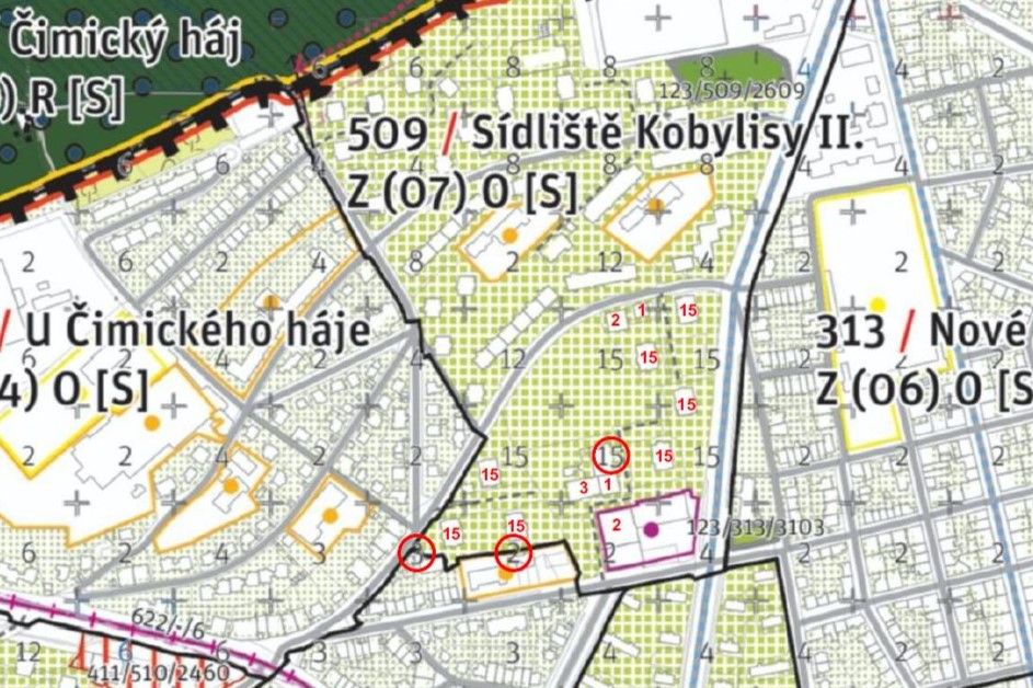 Pro názornost se podívejme na situaci Sídliště Kobylisy II., kam jsem vepsal červeně současné počty podlaží domů a zakroužkoval jejich rozpornost s výškovou regulací v některých čtvercích rastru 100×100m. Jak vidět, tak v místech, kde se potkává nízkopodlažní zástavba rodinných domů s vysokopodlažní sídlíštní zástavbou, tak se stalo, že ve čtverci s výškovou regulací 2 nebo 3 podlaží může stát dům s výškou 15 podlaží. A i naopak, ve čtverci s regulací 15 podlaží může stát nízkopodlažní zástavba kulturního či zdravotního střediska o výšce 1 až 3 podlaží. Stejně, jako si nemyslím, že se budou místní věžáky snižovat na úroveň sousedních rodinných domů a školek, tak si nemyslím, že je správné kontrastní kompozici modernistického sídliště sjednocovat na celkových 15 podlaží. Nešlo by jen o ztrátu typického charakteru, ale i o změnu dopravní zátěže v sídlištním parku ve volné zástavbě. Jistě, pokud si místní obyvatelé formou regulačního plánu navrhnou, projednají a schválí určité změny zástavby, kde si vyjednají vhodnou občanskou vybavenost, je to v pořádku. Ne však takto podprahově, kdy bez detailní znalosti území, bez varování a bez lupy projdou změny, které dosud nikdo s nikým neprojednal. Jednoduše řečeno, k čemu je „výšková regulace“ s tolerancí +/- 12 podlaží? Dle mne jde fakticky o deregulaci, která bude zdrojem řady nemilých překvapení a nedorozumění.