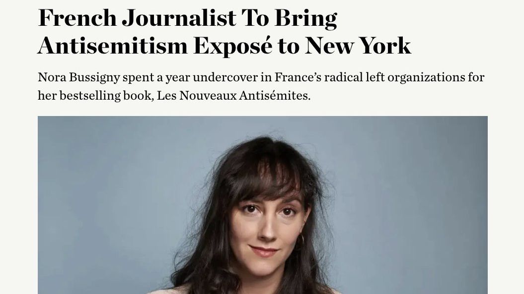 Francouzská investigativní novinářka Nora Bussigny nedávno přinesla pro mnohé šokující svědectví z prostředí radikální levice. Podle jejích slov antisemitismus nyní dokonce „metastázuje novými, alarmujícími způsoby.“