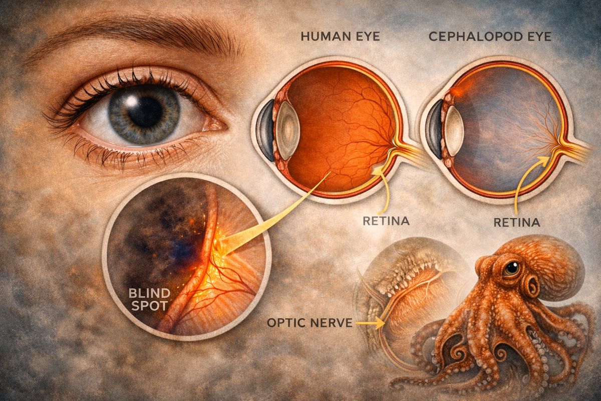 Existují však skupiny živočichů, které mají sítnici uspořádanou opačně – bez slepé skvrny. To ukazuje, že „lepší“ konstrukce je biologicky možná. Jenže obratlovci jedou na historické platformě, která vznikla dávno a pak se rozvíjela tím směrem. Evoluce neřekne: „Tohle otočíme, bude to elegantnější.“ Nejde to otočit po malých krocích bez toho, aby to mezitím přestalo fungovat.