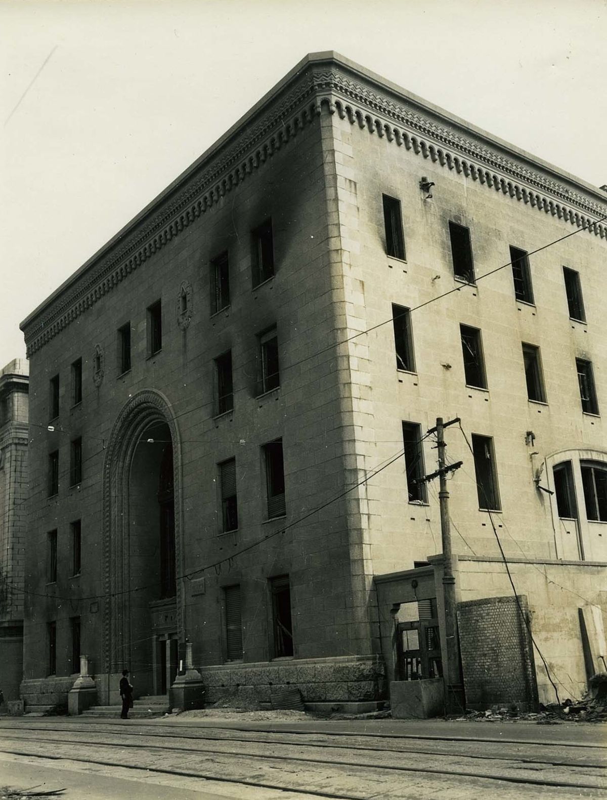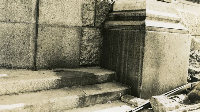 Budova banky, na jejíchž schodech „stín“ zůstal