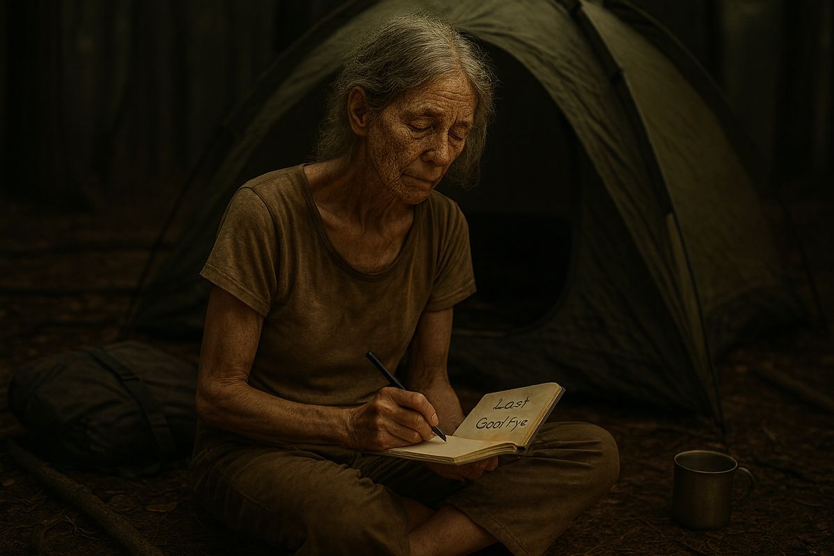 Po zhruba třech týdnech se záznamy zkracují. V textech se objevují vzkazy pro rodinu. Pro George, pro dceru. Prosba, ať se nezlobí. Ujištění, že je miluje. Zápis s datem na konci srpna – a potom už ticho. Z lékařských závěrů plyne, že zemřela pravděpodobně vyčerpáním, hlady a dehydratací, bez cizího zavinění.