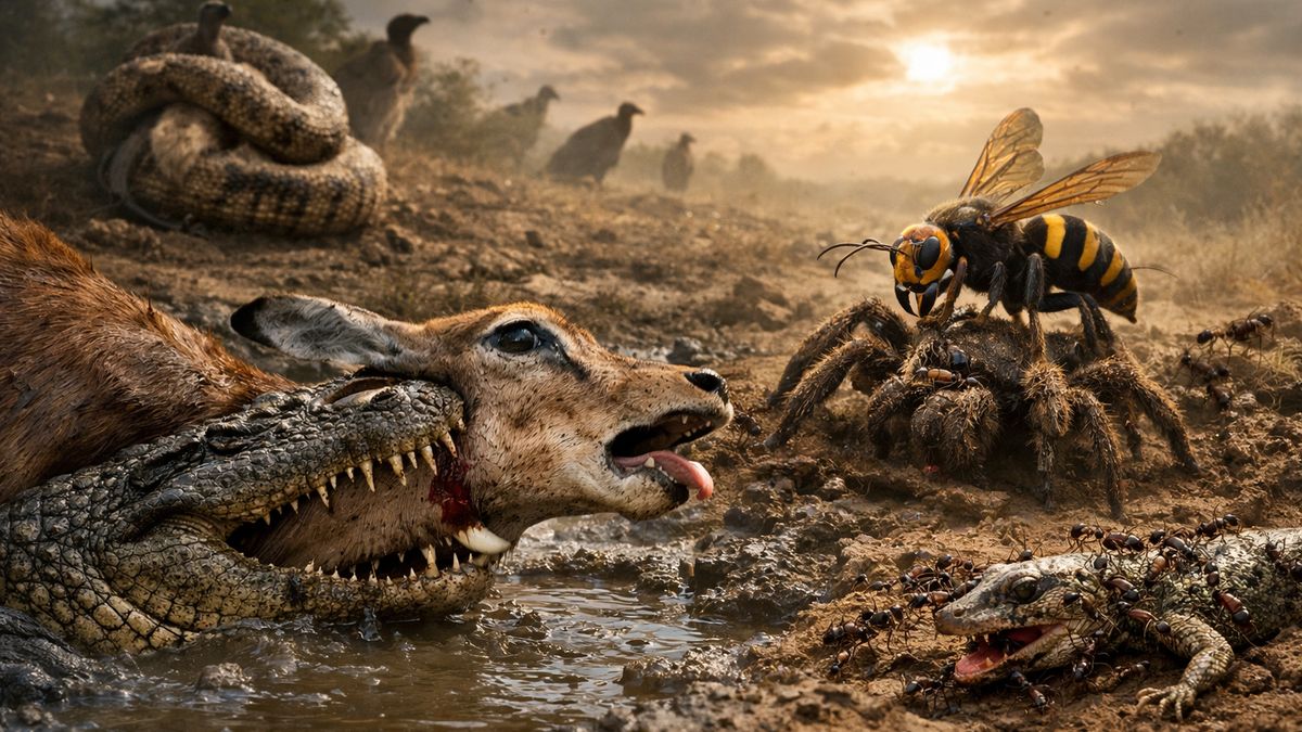 Pro kořist je často horší situace, kdy je „jen“ těžce zraněná a unikne. Protože pak nastupují další scénáře: vykrvácení, infekce, vyčerpání, neschopnost pít nebo žrát. A tím se dostáváme k tomu, co je v přírodě časté a zároveň děsivé: smrt na pokračování.