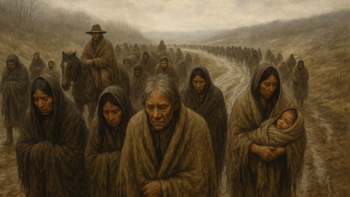 V létě roku 1838 se na rozcestích mezi hřebeny Apalačského pohoří a na farmách podél řeky Tennessee objevili vojáci v prachových pláštích. Přijeli na rozkaz generála Winfielda Scotta. Dveře se otevíraly, truhly zůstávaly stát u zdí, peřiny a hrnce zůstaly na lavicích. Lidé měli jen pár minut. „Vezměte si to nejnutnější,“ řekli vojáci. Dům, pole, sady i rodinné hroby zůstaly za nimi. Z oken se ještě kouřilo a dvůr byl plný slepic. Ten obraz se opakoval desítky a stovky krát. Tak to začalo pro tisíce Cherokeeů – a s nimi i pro kolektivní americkou paměť, která si to dlouho nechtěla připustit.