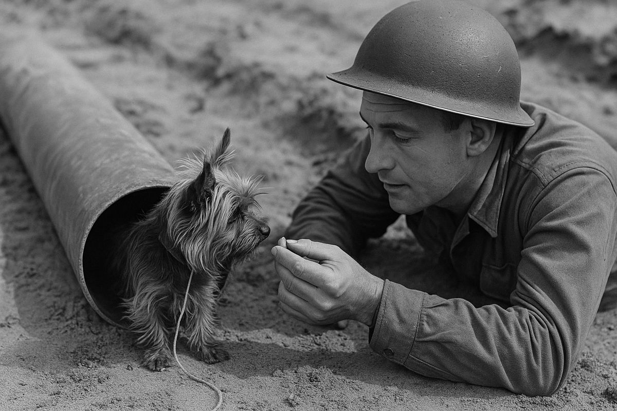 Wynne si trubku prohlédne a napadne ho jednoduchá, i když na první pohled šílená věc. Smoky by se dovnitř vešla. Na obojek jí přiváže tenký provázek, na druhém konci technici připraví vodič. Fenka se nejdřív zdráhá – v trubce je tma a písek. Wynne si lehne k otvoru, mluví na ni klidným hlasem, nabízí pamlsek. Smoky se odhodlá, zmizí v černém tunelu a vojáci čekají. Minuty plynou pomalu. Lidé kolem mají pocit, že slyší vlastní srdce. A pak: škrábání drápků, malý čumák na druhém konci a provázek v zubech.