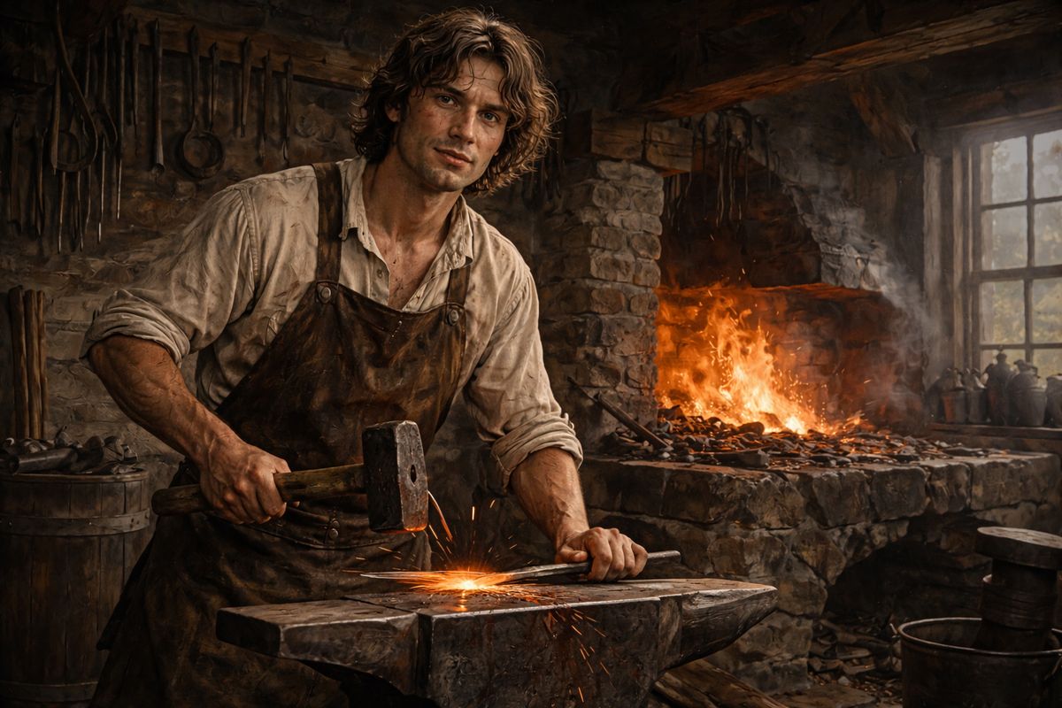 Jeho práce nebyla jen „opravovat zbraně“. Kovářina je často o improvizaci. Neměl dílnu, jakou znal z Anglie, neměl pořádné zásoby, neměl pohodlí. Využíval, co se dalo. Kov z přepadené lodi, kousky železa, které někdo přinesl, rozbité části, které se daly přetavit nebo přepracovat. Vyráběl drobnosti, které byly v obchodu žádané – někdy to byly hroty, někdy nože, někdy úplné maličkosti, ale přesně ty maličkosti rozhodují o tom, kdo má navrch.