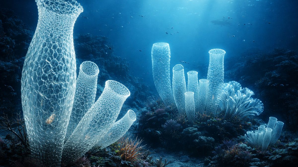 Když se řekne „mořská houba“, většina lidí si představí něco měkkého, přisedlého, možná trochu nudného – kus živé hmoty, který filtruje vodu a tím to hasne. Jenže třída Hexactinellida, česky křemičité nebo „skleněné“ houby, tuhle představu rozhodně nesplňuje. Za prvé: některé vypadají, jako by je někdo vyrobil ve sklárně – jemné mřížky, košíky, trubice a vázy z průsvitného křemíku. A za druhé: z hlediska biologie jsou to jedni z nejdivnějších živočichů, jaké v moři máme.