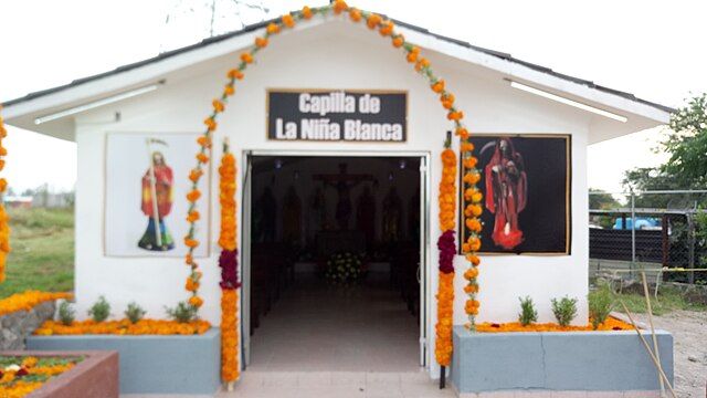 Oltáře kartelů a „polní“ svatyně. Na trasách, které využívají pašeráci, vznikaly malé svatyně. Řidiči a „průvodci“ u nich zastavovali, zapálili svíčku, nechali dárky. Někde šlo o spontánní tvorbu, jinde o „značku“ kontrolujícího gangu. Když mexická armáda v některých regionech tyto oltáře buldozerem likvidovala, vyvolalo to protesty – jedni mluvili o boji s kriminalitou, druzí o zásahu proti náboženské svobodě. Symbolika byla jasná: stát vs. narco-náboženství.