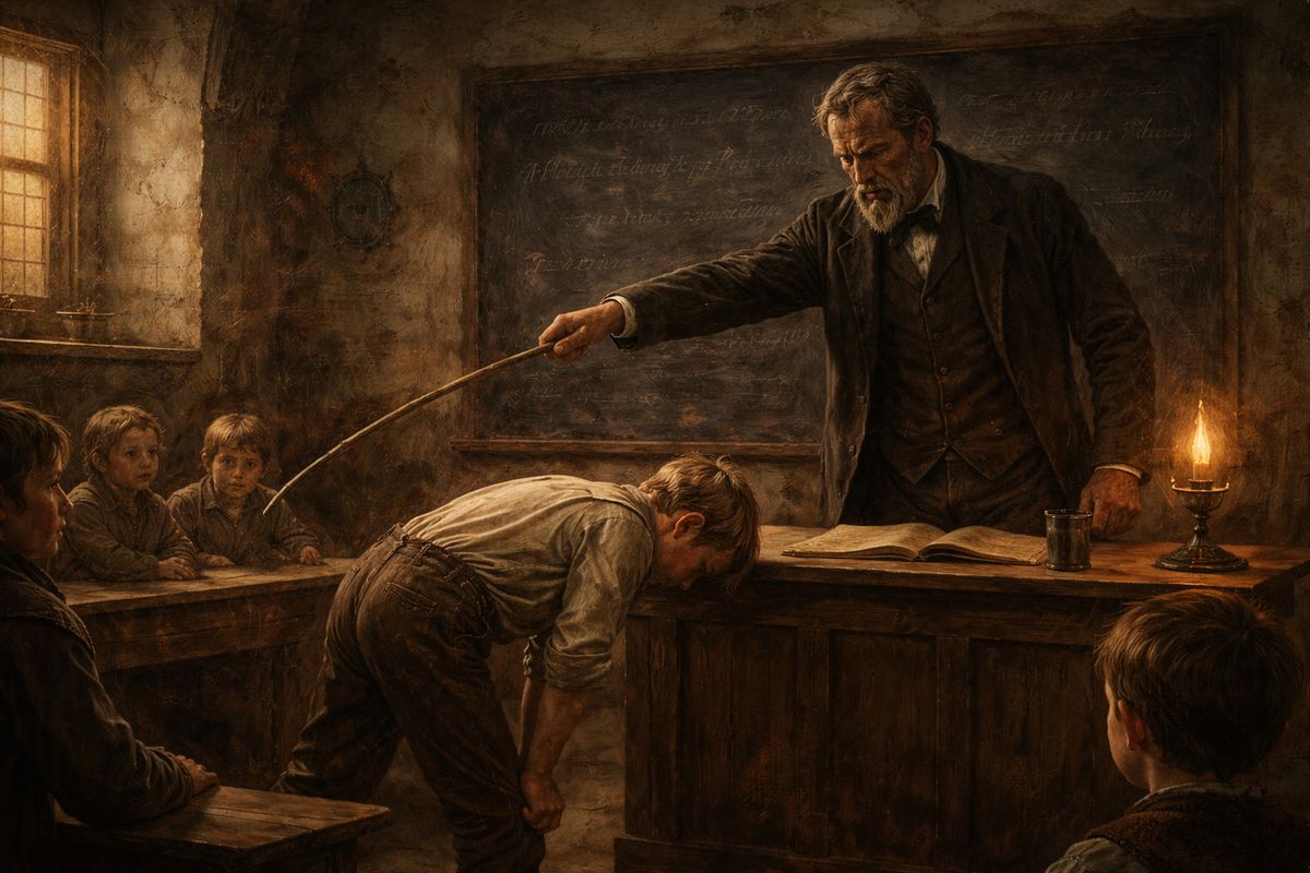 Škola byla často ještě tvrdší než rodina. Učitel měl právo trestat – a také to dělal. Rákoska ve třídě nebyla symbolem selhání pedagoga, ale znakem pořádku.