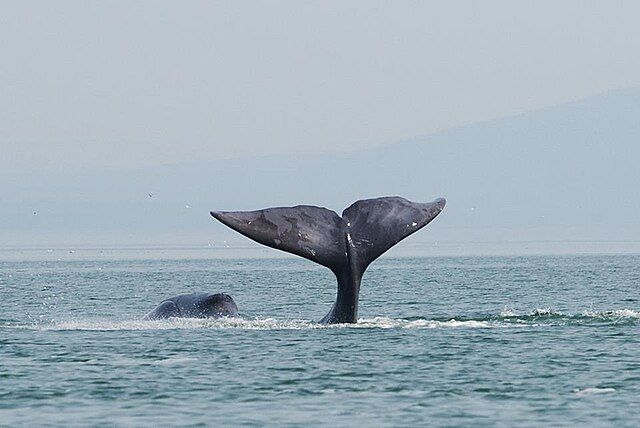 Mohutný ocas ji prozradí, ale na rozdíl od jiných nemá velkou hřbetní ploutev