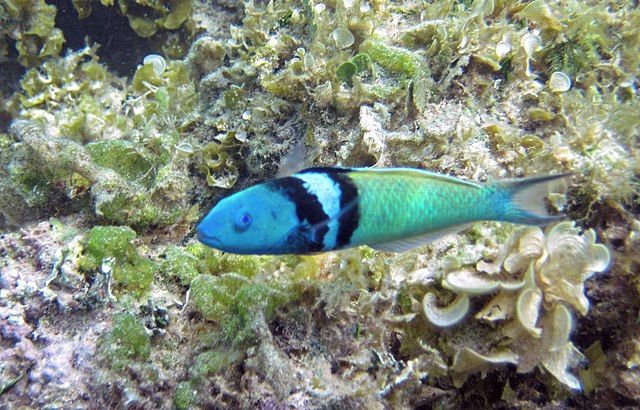 Kněžík dvoupruhý (Thalassoma bifasciatum) je ikonický příklad protogynie: jedinci fungují jako samice a později se mohou změnit na samce.