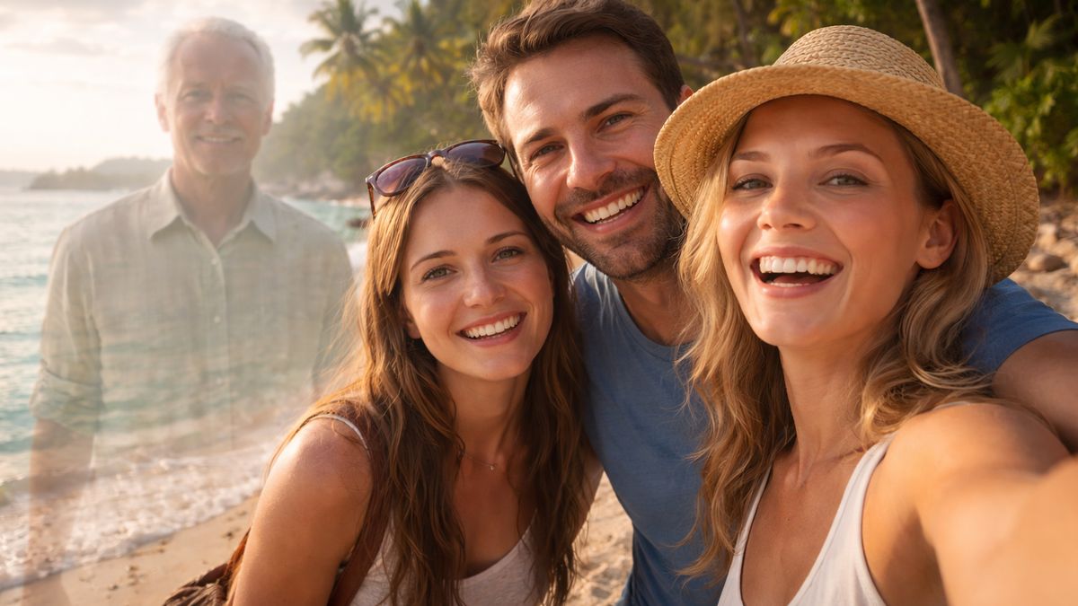 Fotku nikdy nezveřejnila. Nikomu dalšímu ji neukázala. Uložila si ji do počítače, do složky bez názvu. Jen občas ji otevře. Dívá se na ni. Na sebe. Na moře. A na postavu v pozadí, která se dívá přímo na ni, jako by věděla, že jednoho dne si všimne.