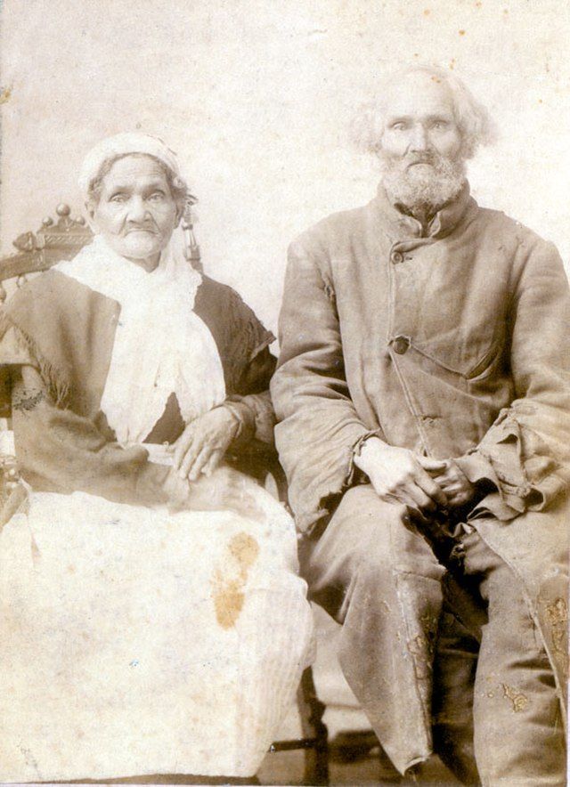 Svědectví doby. Manželé Hannah a Aaron Jacksonovi. Starý pár. Bývalí otroci, kterým po prezidentu Jacksonovi zůstalo jen jméno. Snímek z roku 1865.