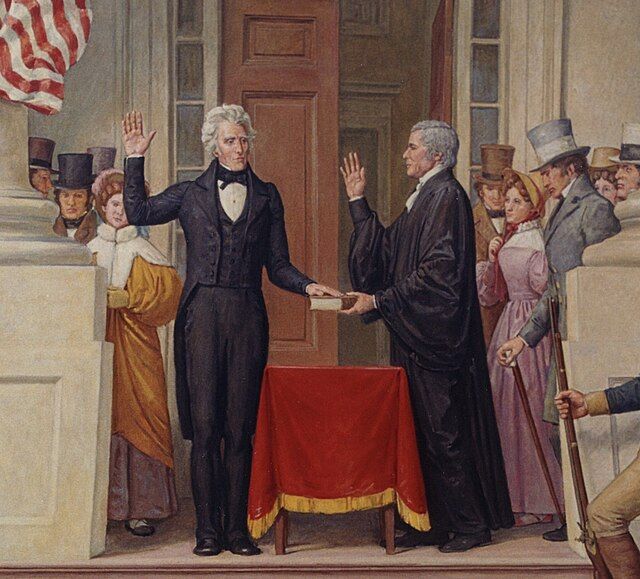 Prezident Jackson je poprvé uváděn do úřadu. Rok 1829.