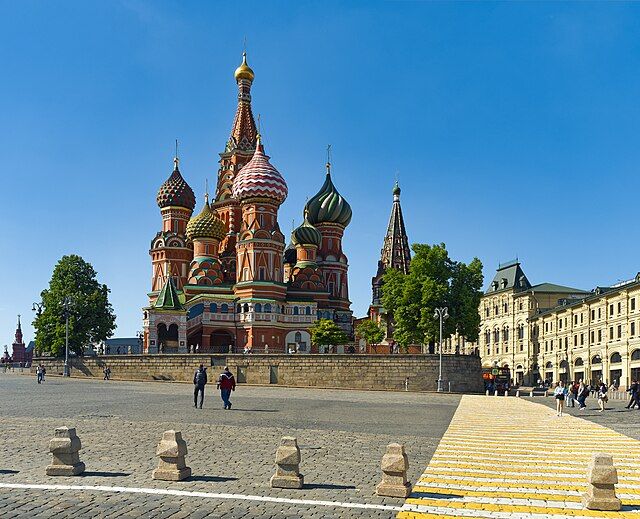 Chrám Vasila Blaženého v Moskvě. Dominanta města stále nese jméno svatého blázna.