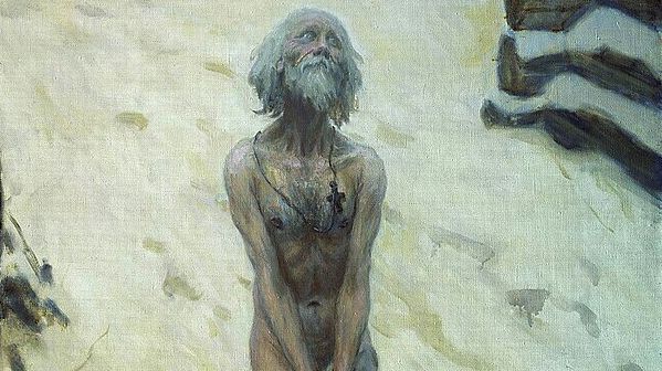 Všichni se přišli poklonit svatému bláznovi Vasilovi, o kterém se říkalo, že uměl předpovídat budoucnost, číst myšlenky nebo se snad dokonce i teleportovat. Jako to prý udělal při požáru Novgorodu, aby varoval místní před katastrofou.