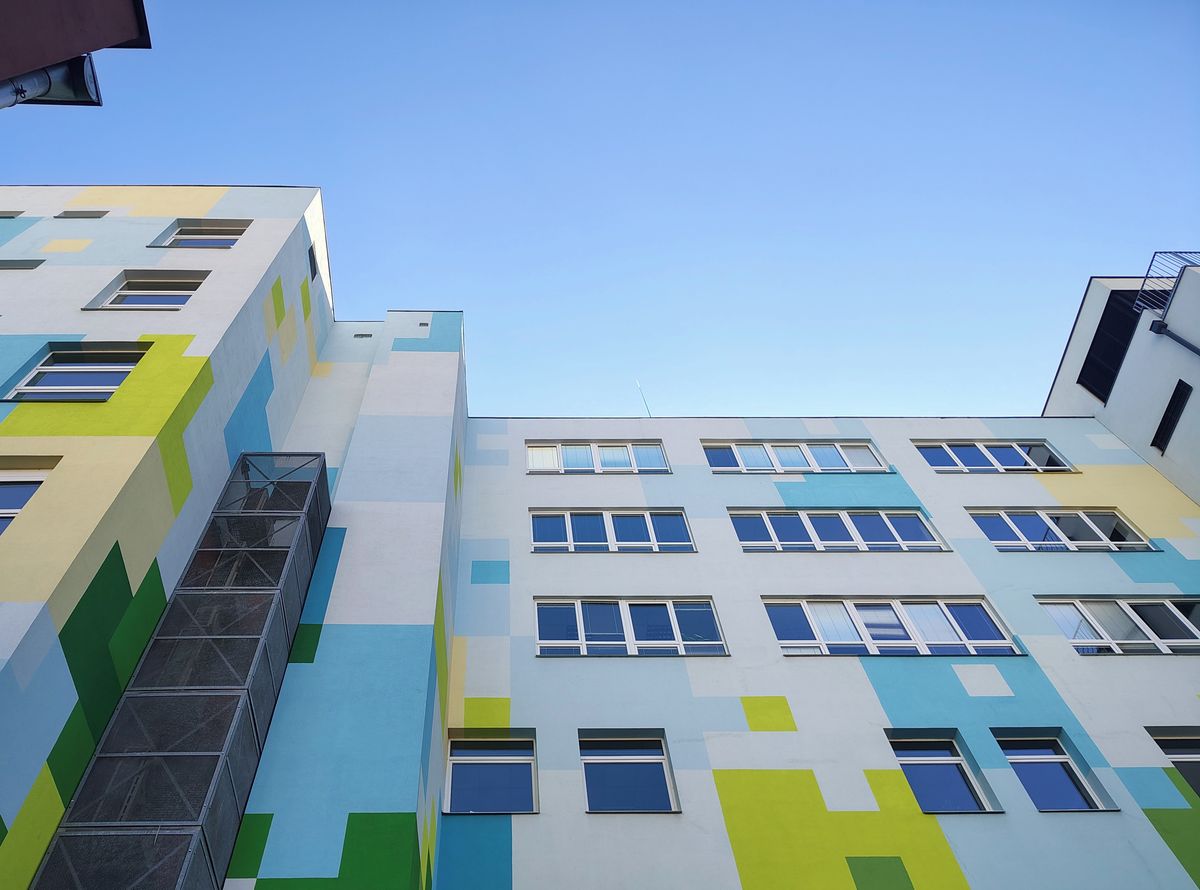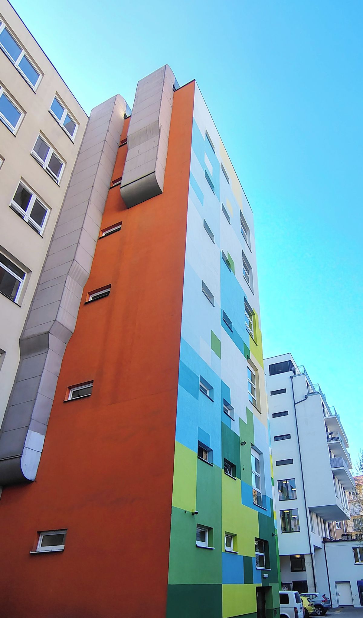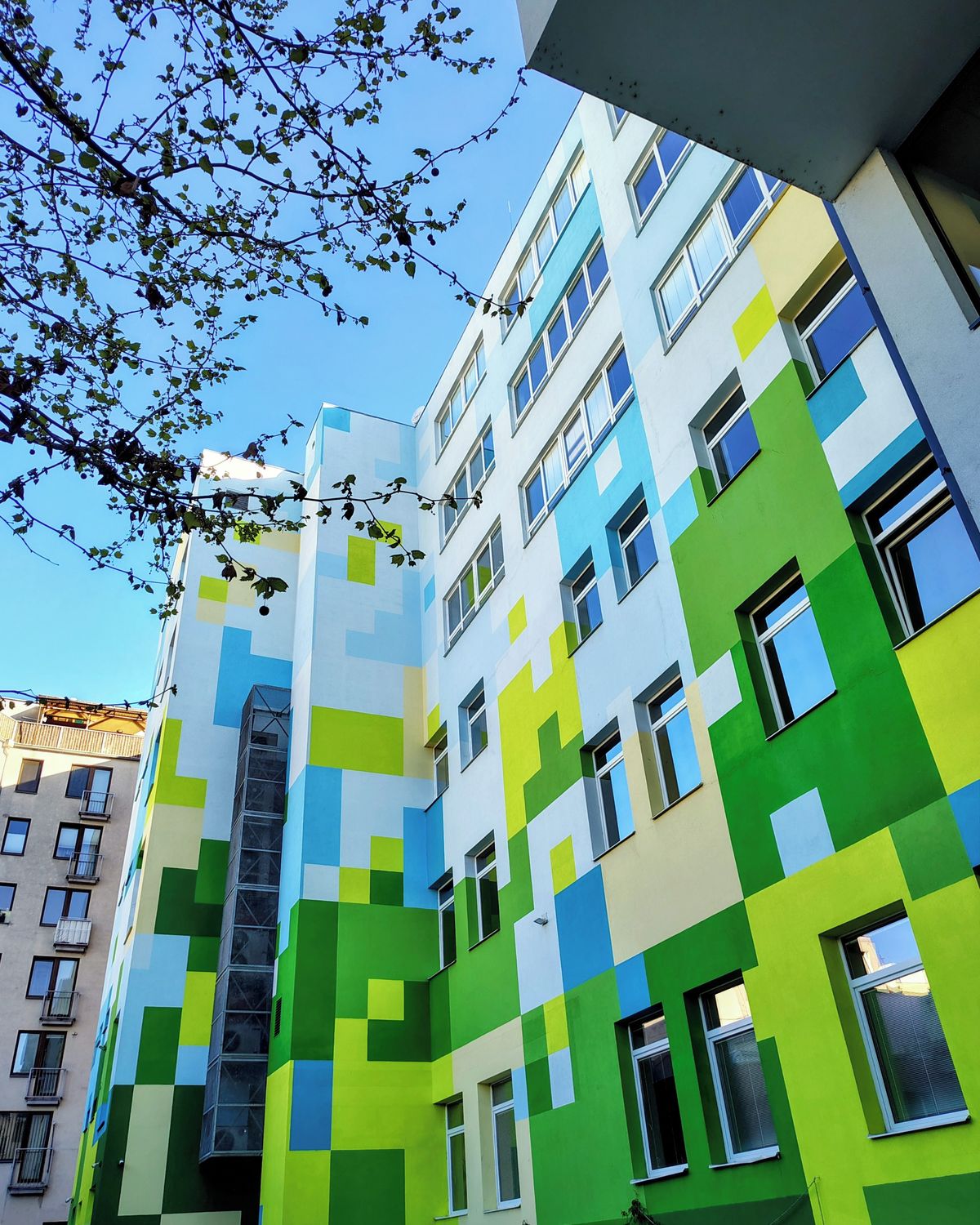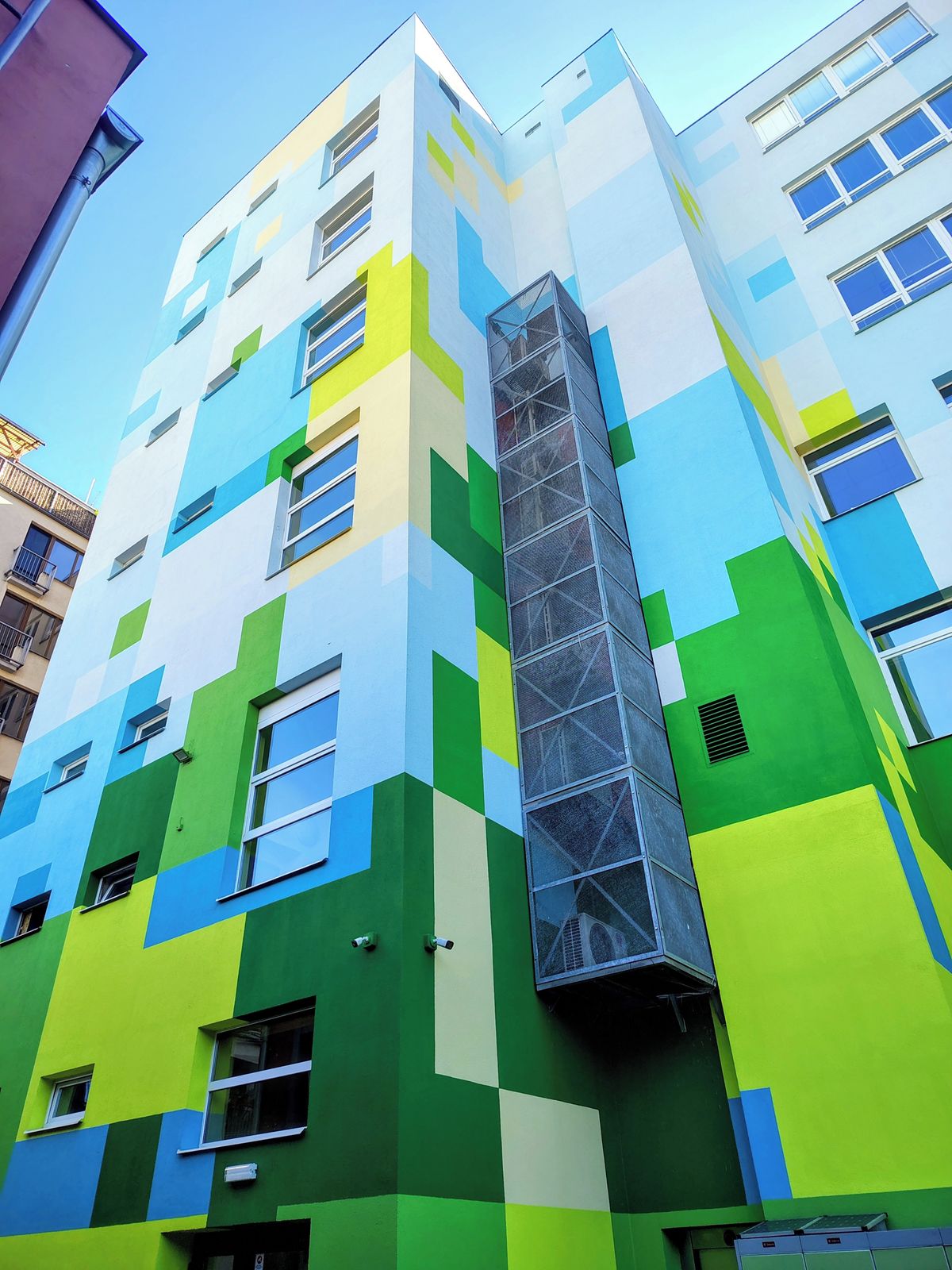 Ve dvoře je dům zajímavý, z ulice Lihovarská v Praze 9 je fasáda mnohem nudnější, zatím! Ale to se brzy změní…