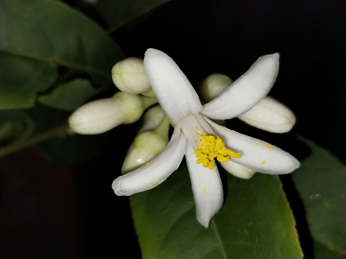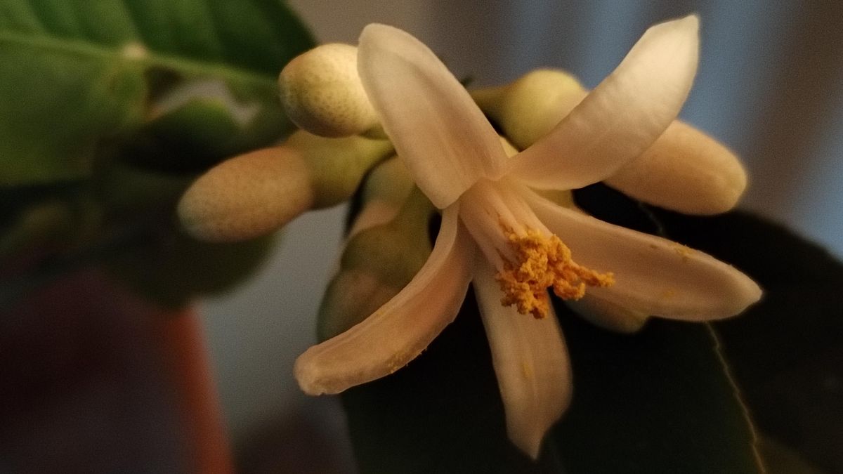 Ze života mého tvůrčího. Konečně další rozvinuté květy citrusů, které zimují v interiéru baťovského půldomku.
