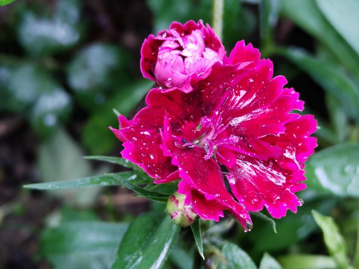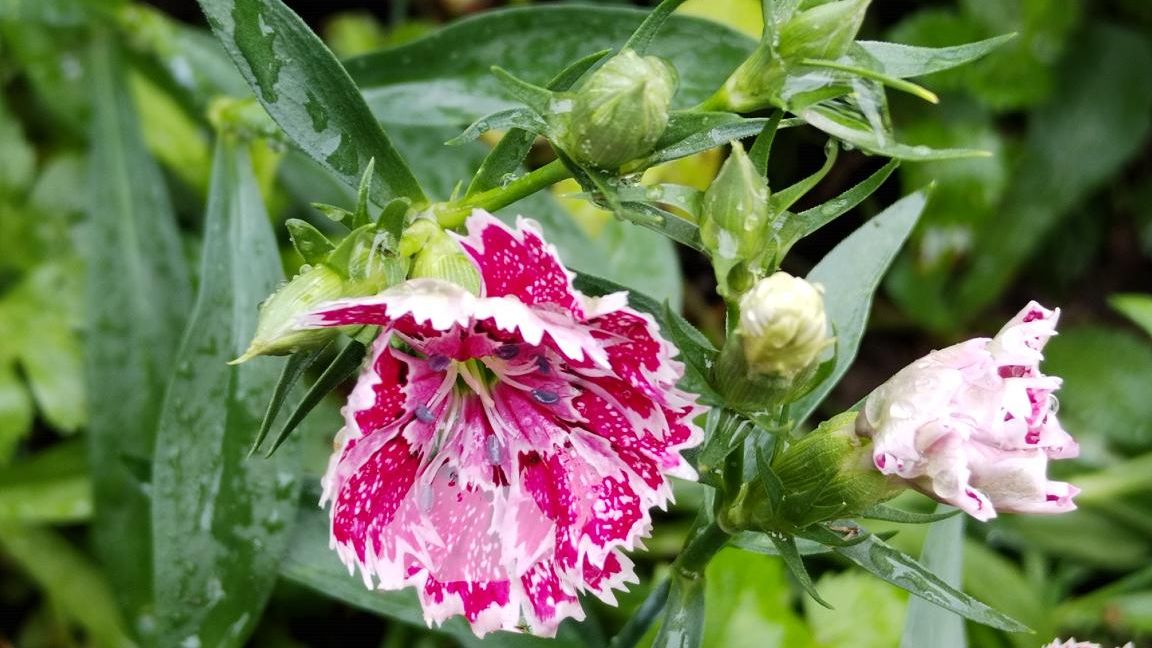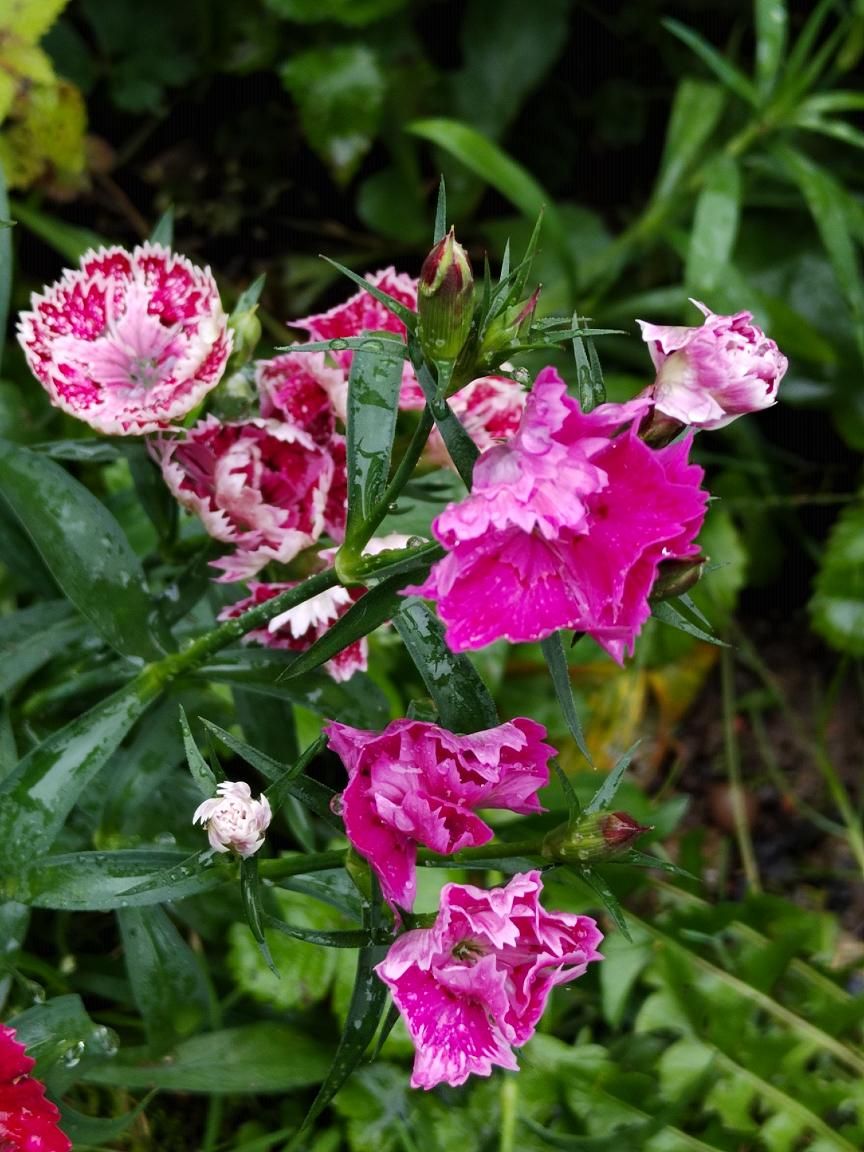 Dnes v poledne jsem zavítal na zahrádku, která je obdařena deštivou vláhou. Poblíž růže mi rostou hvozdíky čínské s různými květy.