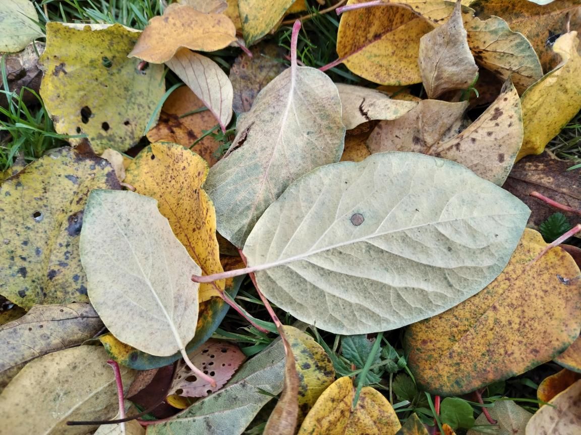 Meruňka, kdouloň a muchovník shodily své listí, které jsem vyfotil u nás doma na zahrádce. Zatím listí nechávám na zahrádce. Co kdybych přilákal nějakého ježka?