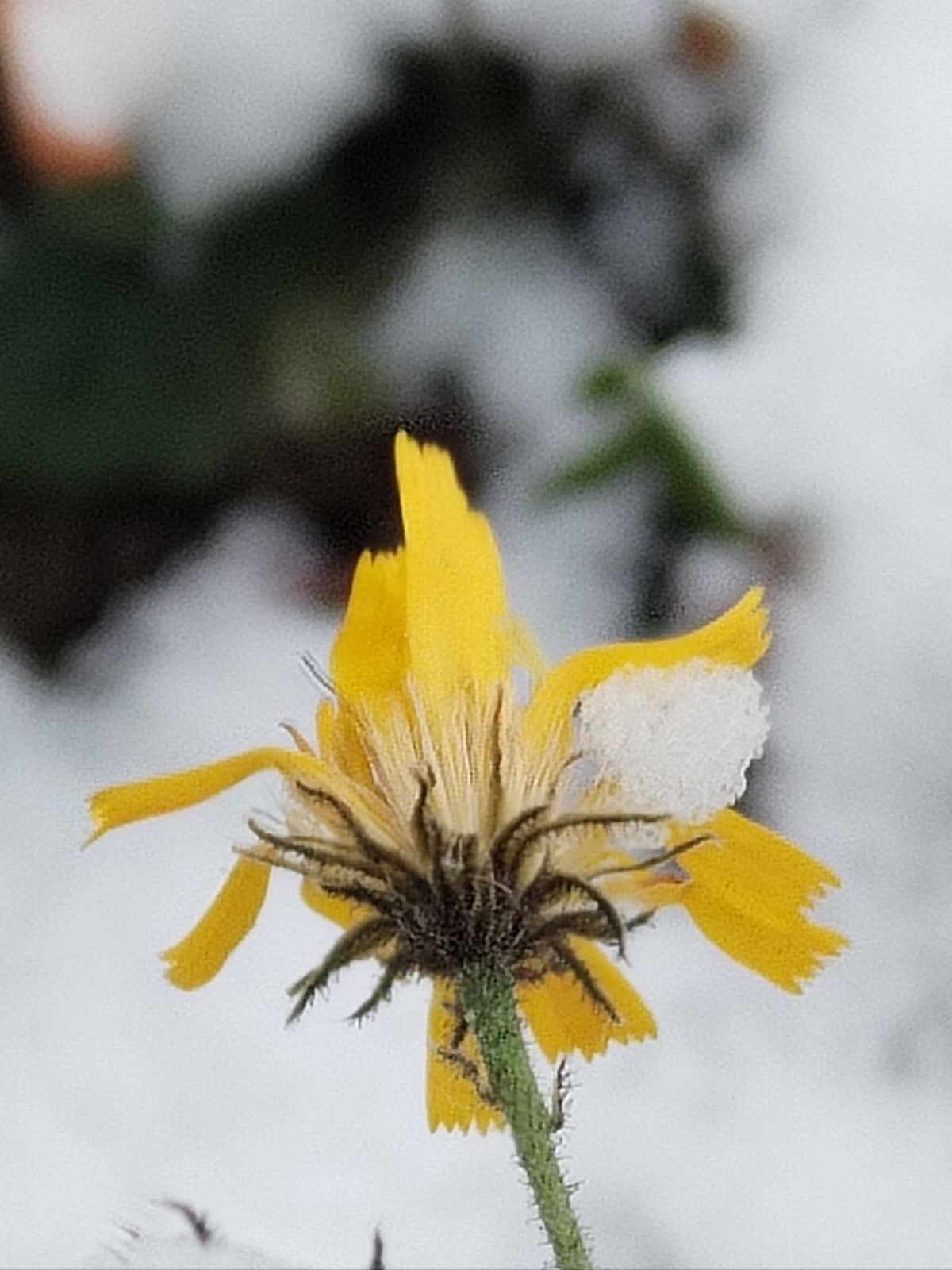 Pak jsem vyfotil ještě kvetoucí prasetník kořenatý, jenž je zasněžený. Ten se nachází na svahu poblíž zastávky na opačné straně.