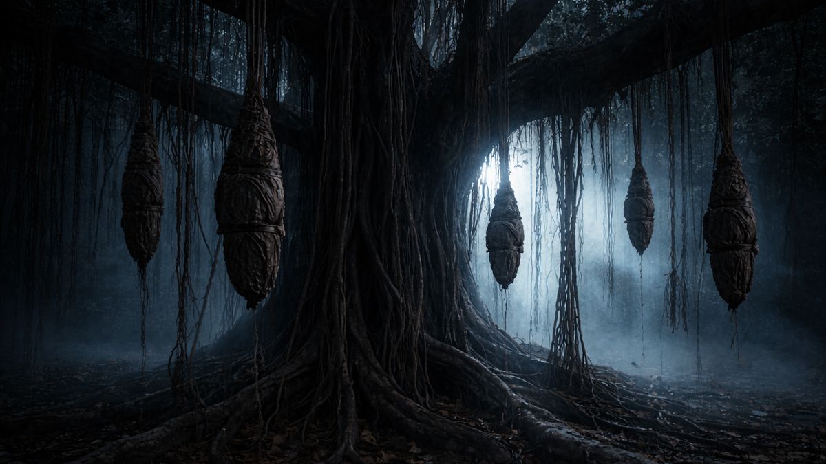Další instrukce vyžadovaly absolutní klid. Členové rodiny měli napodobit kořeny stromu banyánu, které visí z větví směrem k zemi. V představách je měly obepnout a spojit. Podle deníků měl po návratu patriarchy následovat okamžik, kdy si všichni navzájem pomohou rozvázat ruce.